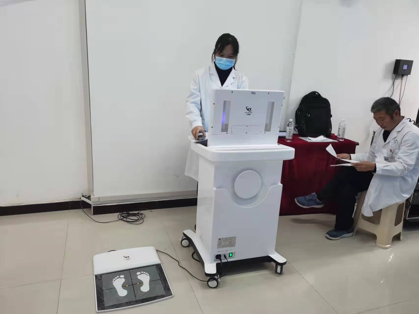 初步評估后用先進儀器對初篩疑似學(xué)生進行旋轉(zhuǎn)角度和足底壓力測量。