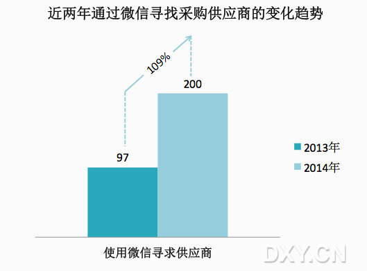 使用微信的用戶人數(shù)超 9 成,而通過微信尋找采購(gòu)供應(yīng)商的卻不足5%,那么,微信是另一片藍(lán)海嗎,它是否會(huì)成為未來(lái)供應(yīng)商攻城略地的主戰(zhàn)場(chǎng),同時(shí)未來(lái)生物醫(yī)藥第三方采購(gòu)平臺(tái)與微信的有效結(jié)合,也很值得期待。